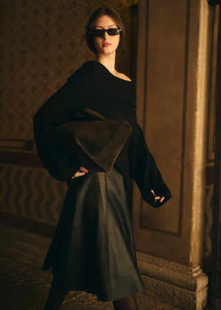 The skirt is made from real leather and is super soft. I love the crocodile embossed texture and quality. Super stylish and definitely a conversation starter.
