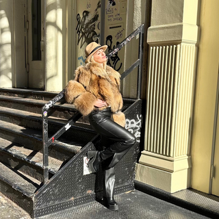 Our crocodile embossed corsage belt and fox stole at Milan Fashion Week. Photo: La.Cosy //IG